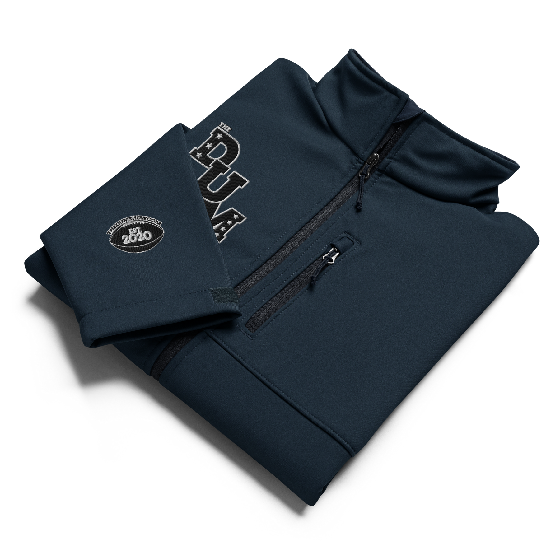 The jacket features a left chest embroidered DUM Show logo done in bold collegiate lettering, clean and unmistakable. The back carries an extra large Dont Unfriend Me Show patch, styled in classic college fashion so it stands out from across the room. The right sleeve is finished with DUM Show Established 2020, capped with a football detail that gives it a true letterman inspired look without losing the performance feel of a Columbia softshell.